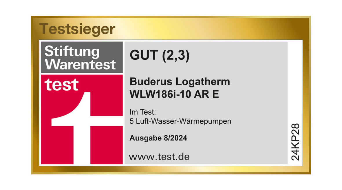 Mit der Buderus Logatherm WLW186i-10 AR E, dem Stiftung Warentest Testsieger 2024 in der Kategorie „Luft-Wasser-Wärmepumpen“, in die Zukunft starten! In der Ausgabe 8/2024 nimmt Stiftung Warentest mehrere Luft-Wasser-Wärmepumpen unter die Lupe. Das Ergebnis: Buderus überzeugt mit der Logatherm WLW186i-10 AR E.
